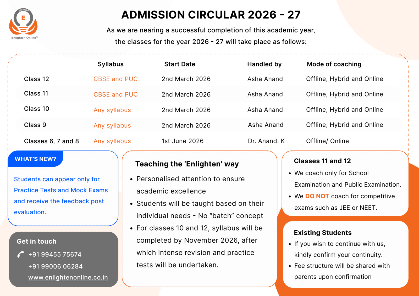 As we all realise that nothing can replace a face to face coaching, we will be continuing the personal classes as well in our endeavour, going forward. Our earnest attempt would be to minimize the gap between the two modes to achieve effectiveness of teaching.